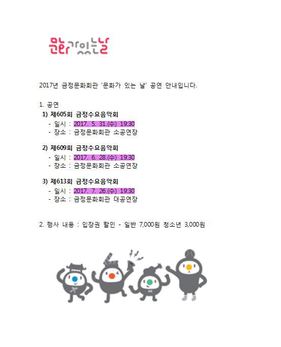 2017년 하반기 정기대관 접수 이후 일정 알림