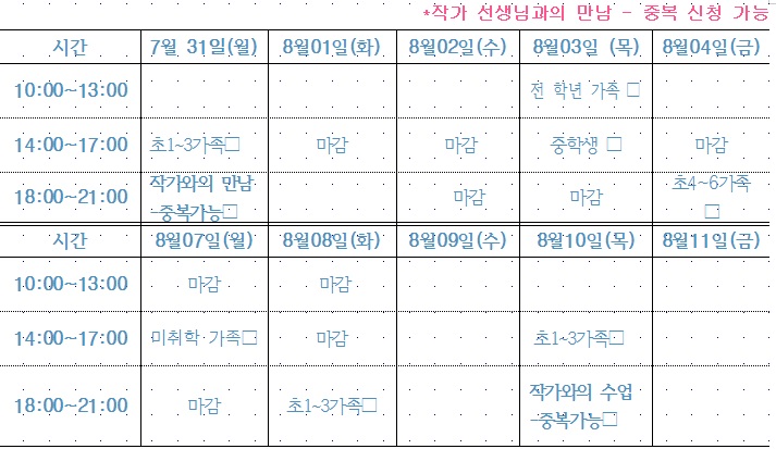 * 수업 신청시 3지망까지 꼭 작성 부탁드립니다