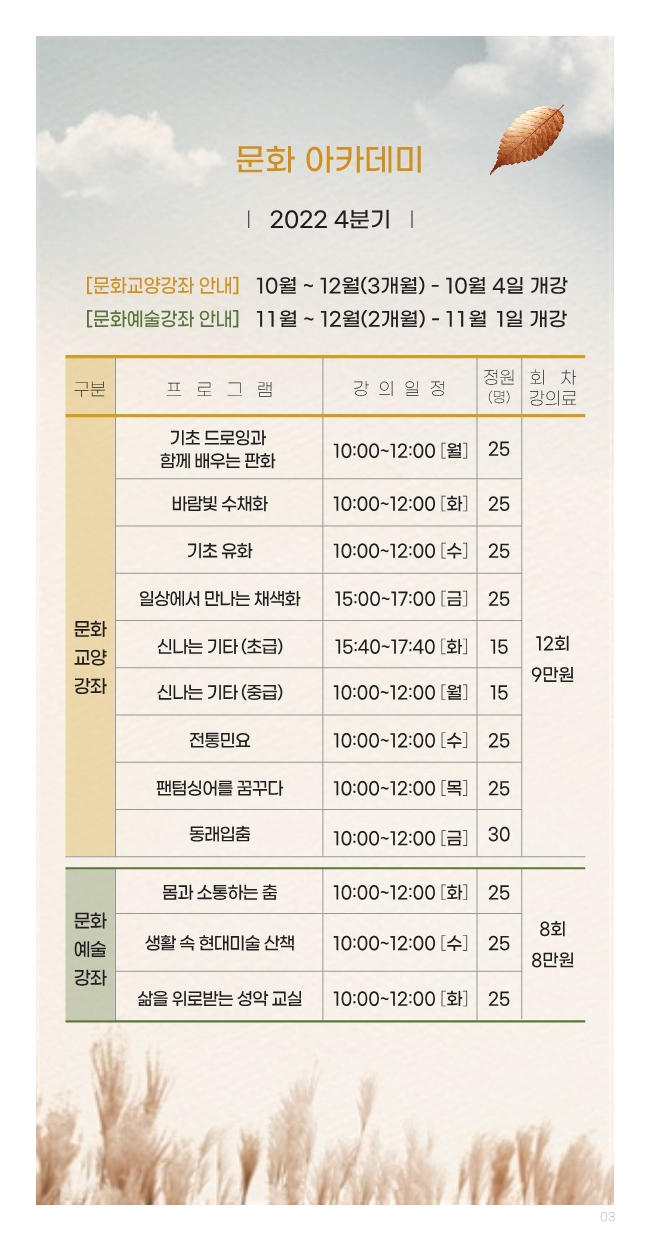 - 2022년도 4분기 문화 아카데미 수강생 모집 안내