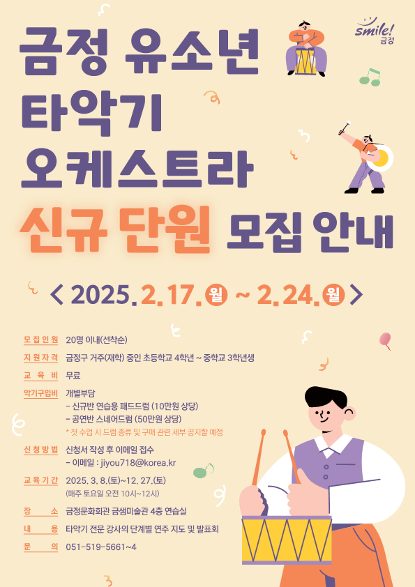 - [안내] 2025년 금정유소년타악기오케스트라 신규단원 모집