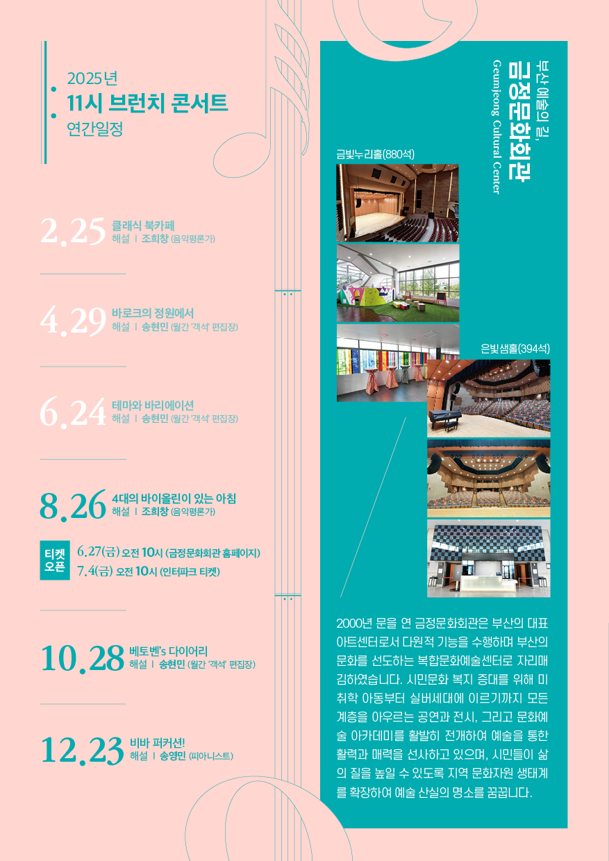 * 본 공연은 1) 금정문화회관 홈페이지 2) 인터파크 티켓에서 예매 가능하십니다.