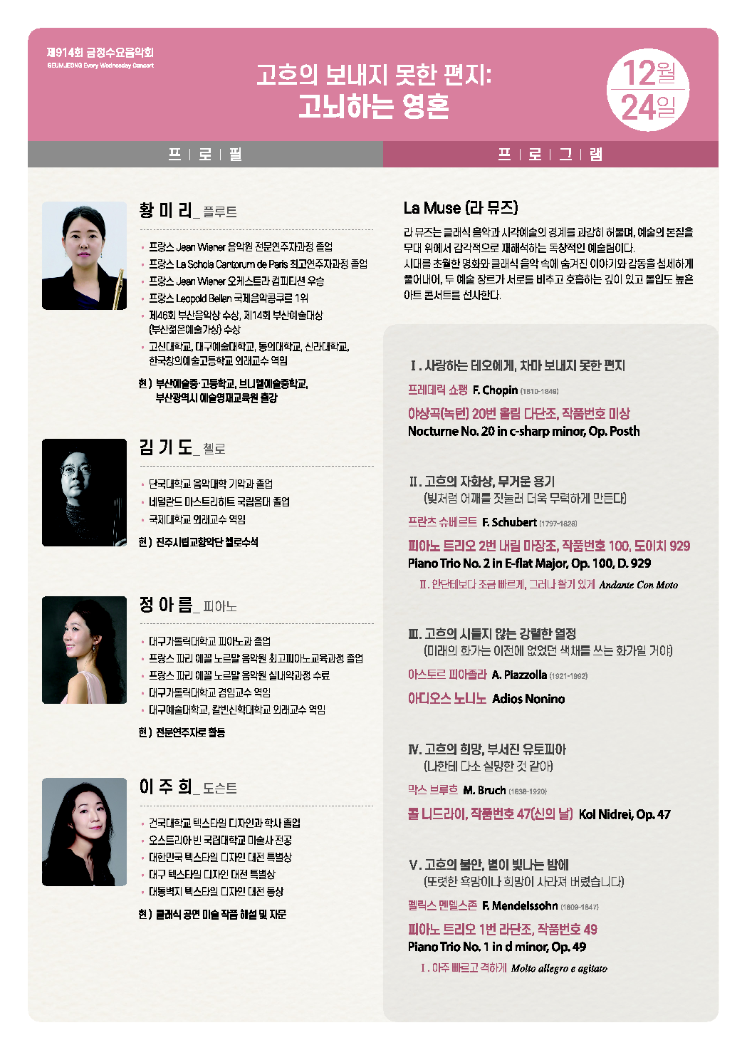 기획공연 은빛샘홀제914회 금정수요음악회 <고흐의 보내지 못한 편지: 고뇌하는 영혼>