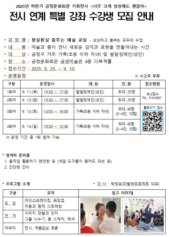 (모집마감)2025년 하반기 금정문화회관 기획전시 연계 특별 강좌 수강생 모집 안내