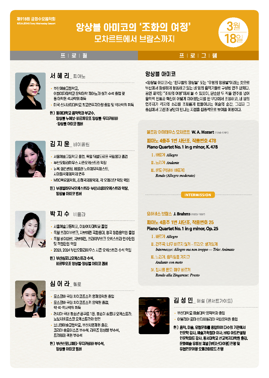 기획공연 은빛샘홀제918회 금정수요음악회 <앙상블 아미코의 '조화의 여정'>
