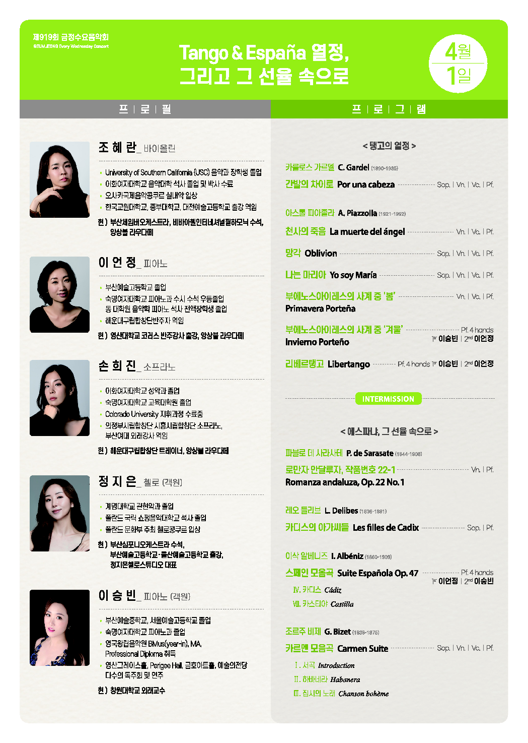 기획공연 은빛샘홀제919회 금정수요음악회 <Tango & Espana 열정, 그리고 그 선율속으로>