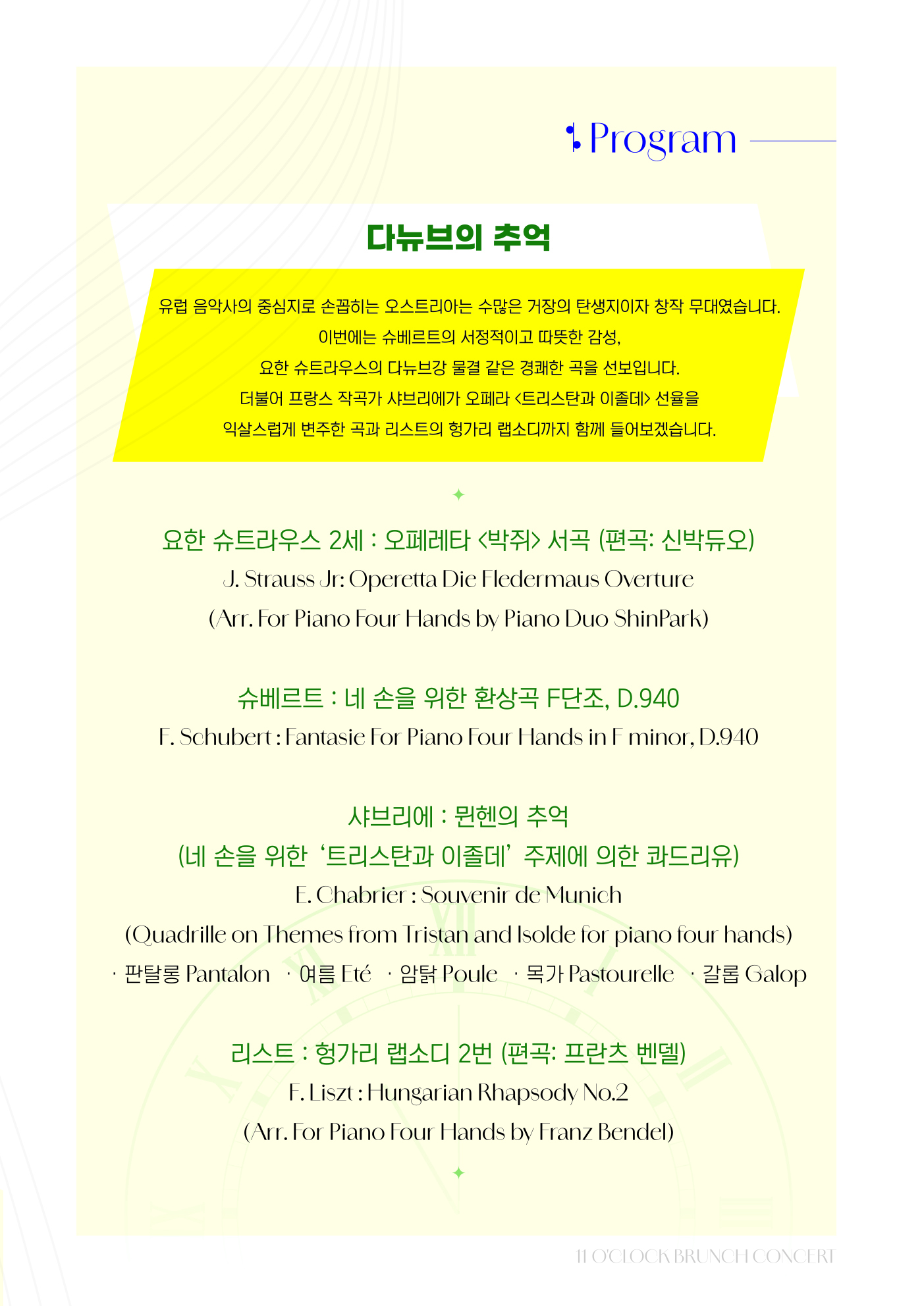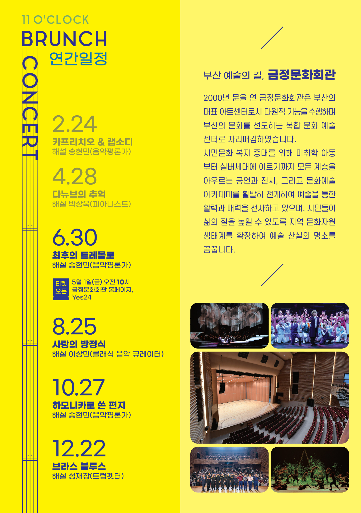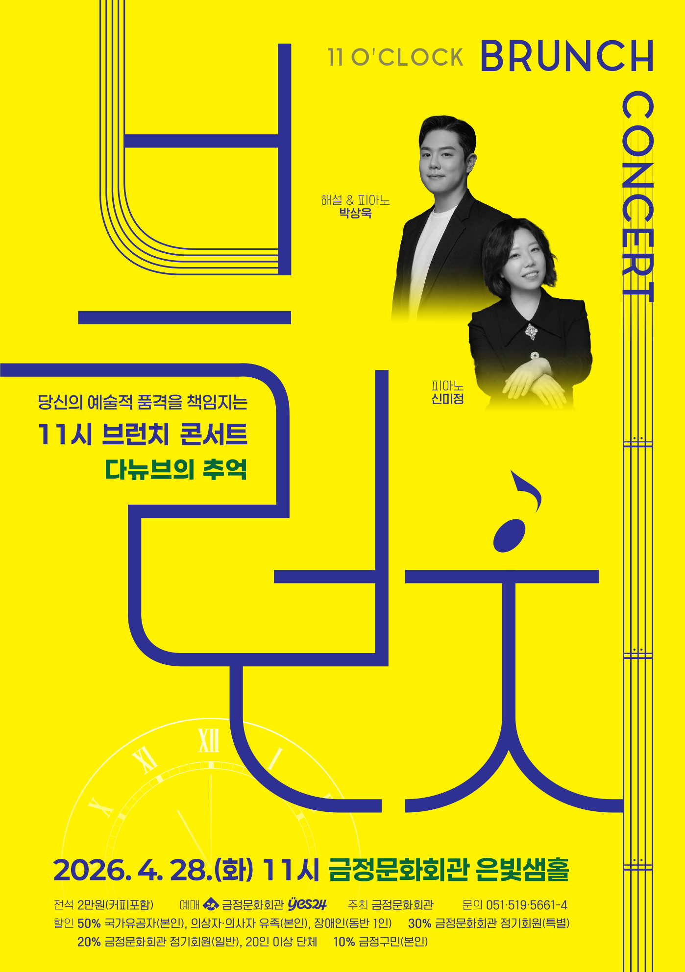 2)11시 브런치 콘서트 현장 선예매 없이 오직 온라인 예매만 가능한점 양해 부탁드립니다.