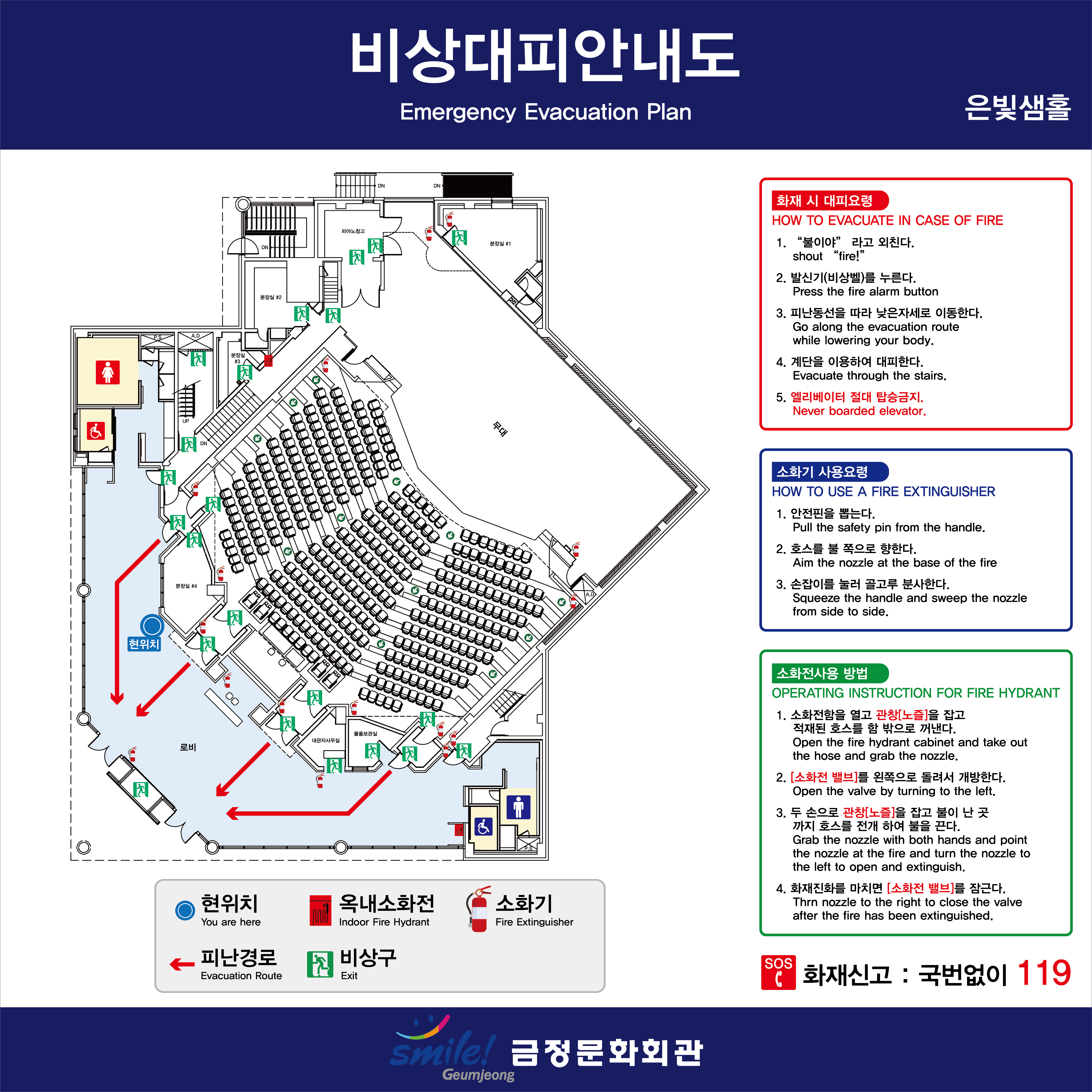 은빛샘홀은 관객이 출입할 때 여타의 동선과 혼잡없이 접근할 수 있도록 독립기능을 확보하고 있는 공간이다.