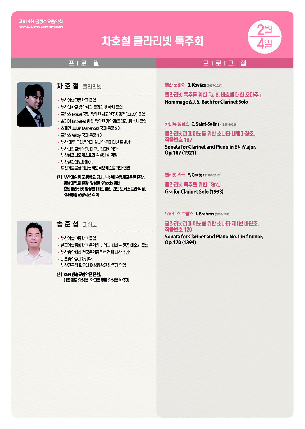 • 제914회 금정수요음악회 <차호철 클라리넷 독주회>